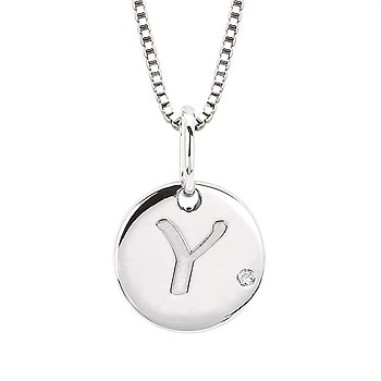 Diva Diamonds® Letter Y Pendant In Sterling Silver With .01 Ct. Diamond With 18" Box Chain (Adjustable To 16") And Lobster Claw Clasp Sterling Silver Diamond Initial Y Pendant with 16" Chain and 2" Extender